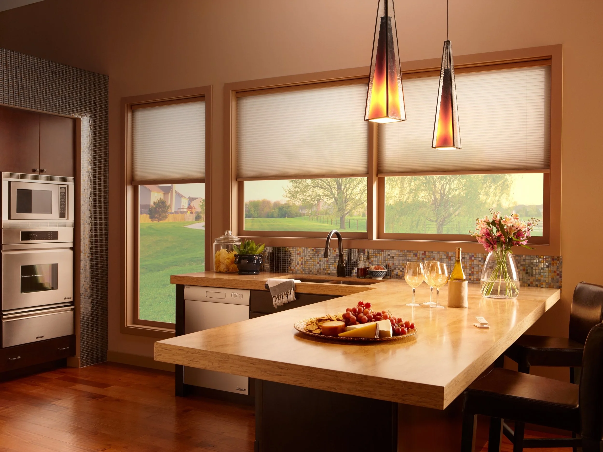 • Specialty Materials – Wood blinds, honeycomb cellular shades, and designer textiles available for custom applications.