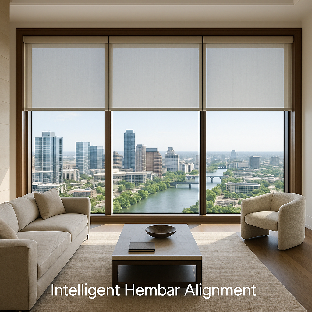 • Intelligent Hembar Alignment – Shades across multiple windows rise and lower in perfect unison, creating a refined and architectural aesthetic.