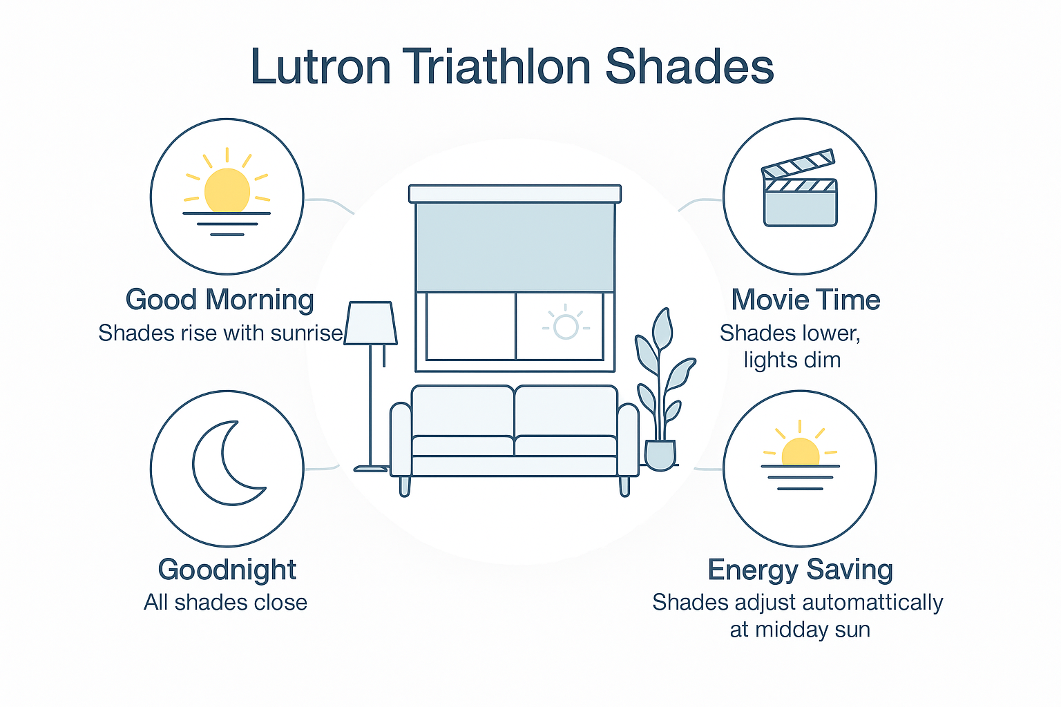 Upgrade your home with the elegance and convenience of Lutron Triathlon Shades.